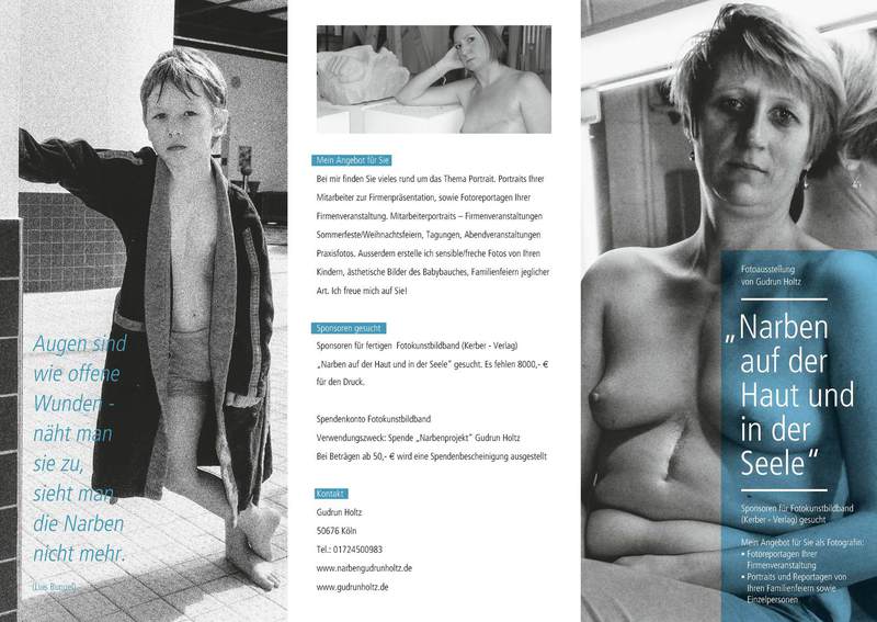 Schweiz, Konstanz, Hamburg und Bremen ausgestellt. Narben, die Zeichen des Lebens, gehören zu uns, aber sie werden versteckt. Die Frauen und Männer, die Gudrun Holtz fotografiert, offenbaren uns
